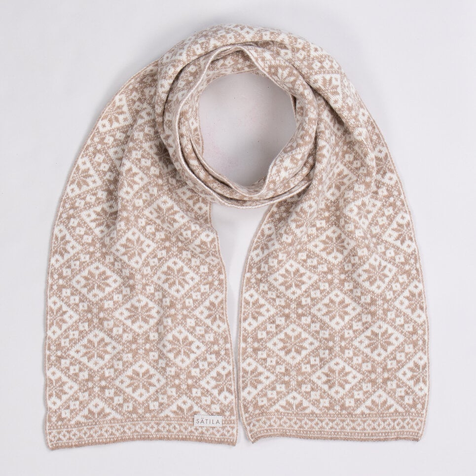 Grace scarf är en tidlös klassiker i Sätilas sortiment tack vare dess traditionella stil med det nordiska stjärnmöstret. Halsduken är stickad av mjuk och värmande lammull och har måtten 24 x 180 cm. Tillverkad på egen fabrik i Sätila, Sverige.