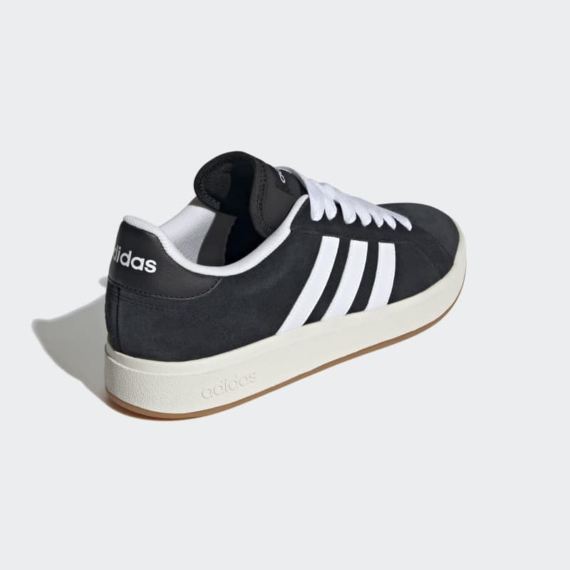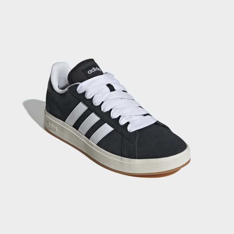 Stilrena och mångsidiga sneakers, delvis gjorda med återvunnet material. De här skorna från adidas är en modern uppdatering av klassisk Grand Court-stil. Ovandelen i mjuk mocka med ikoniska 3-Stripes ger en lyxig look. På insidan omsluter det mjuka fodret foten med komfort. Den slitstarka koppsulan i gummi ger stöd åt varje steg, oavsett om du springer ärenden eller är på resande fot.