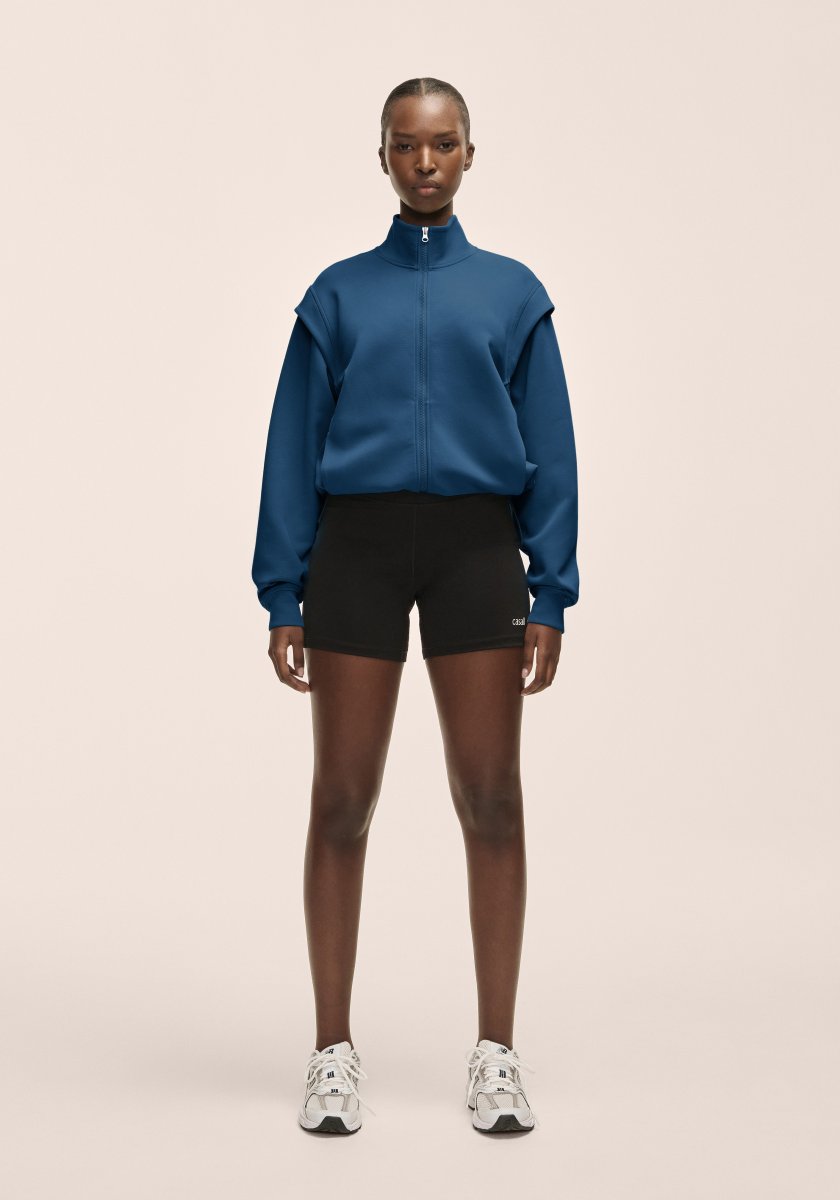 - Mjuk jacka med hög krage och dragkedja.