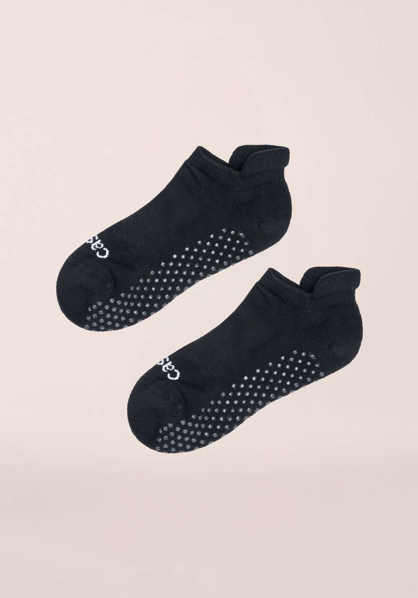 Pilates-strumpor med silikonprickar under foten för att motverka glid under dina pass. Tillverkade av ekologisk bomull, återvunnen polyamid och elastan. Designad för studioklasser som yoga och Pilates. Halkskyddande silikonprickar under fotsulan.