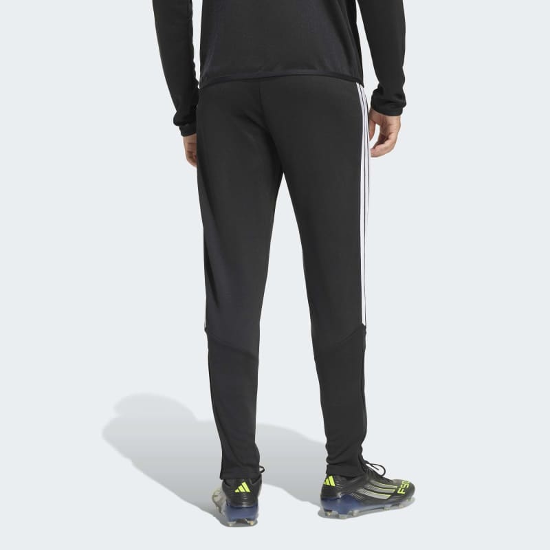 De här träningsbyxorna från adidas har en smal och strömlinjeformad passform som inte bromsar dina rörelser. De är enkla att ta av sig när de tuffa träningspassen är över. Dragkedjorna vid anklarna gör nämligen att du slipper snöra av dig dina fotbollsskor eller sneakers för att ta av eller på dig byxorna.Tillverkad av 100 % återvunnet material.