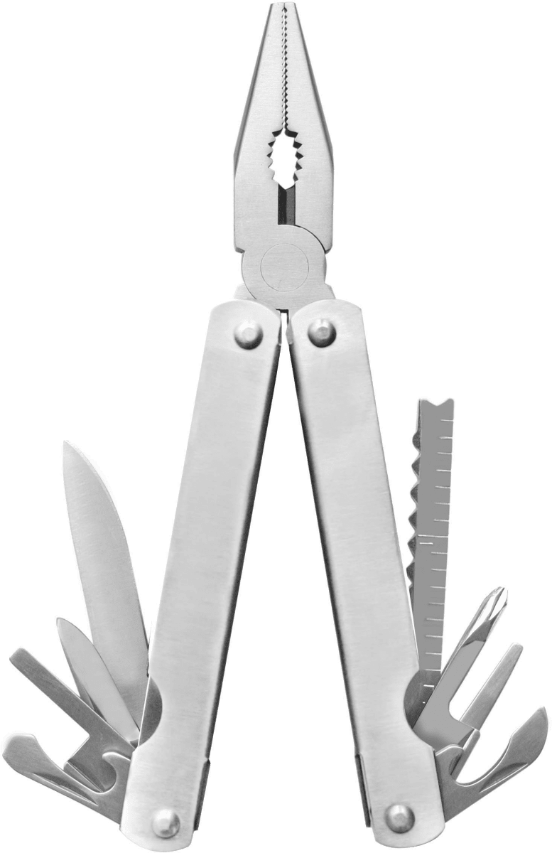 En multitång i rostfritt stål som erbjuder trots sin relativa enkelhet alla tänkbara verktyg och funktioner som man kan önska sig av ett multiverktyg. Den är liten och smidig, men kraftfull så att det räcker. Idealisk för resa, camping, fiske, picknick, bil och cykel. Levereras med praktisk bärväska i kraftig polyesterväv. Multitången har 14 olika funktioner.