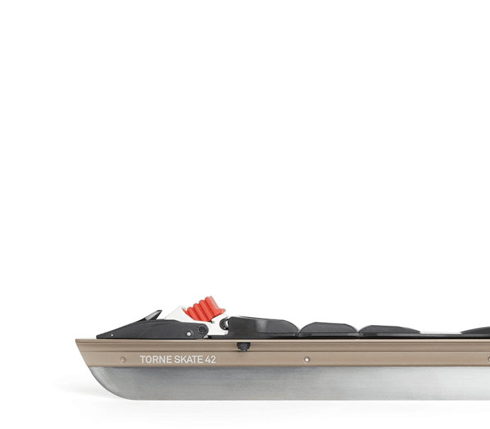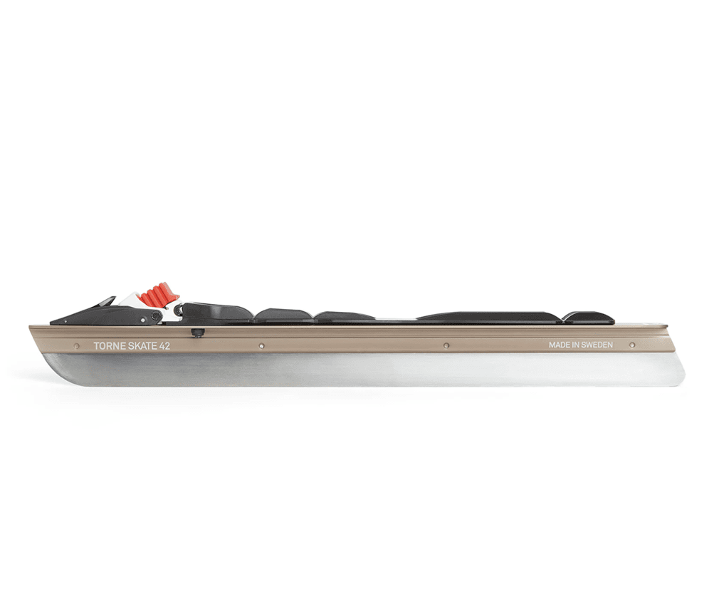 Torne Skate är en ny, lätt skridsko med kort nos och en åkradie på 25 m. Den fungerar bäst på slät is och preparerade banor. Levereras med en monterad, unik Salomon Prolink® Race-bindning med extra styv flexkudde, utvecklad speciellt för Lundhags. Skridskon är redo att användas direkt ur förpackningen. Tillverkad i Sverige av återvunnet svenskt rostfritt stål och aluminium med lågt koldioxidavtryck. 100 % återvinningsbar. Ny solid konstruktion. Skenan är fäst i aluminiumprofilen med hjälp av både presspassning och stansning. Den korta nosen optimerar iskontakten och skridskoradien på 25 m ger en smidig och lekfull skridsko. Finns i två längder, 39 cm (pjäxstorlek 36-41) och 42 cm (pjäxstorlek 41-46). Varje längd är utformad för att placera din fot korrekt i förhållande till skenans balanspunkt utan ytterligare justeringar. Skenans bredd på 1,4 mm är perfekt för naturis i Skandinavien.
